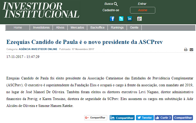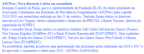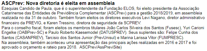 Os canais AssPreviSite, Revista Investidor Institucional e Centrus destacaram notícia sobre a nova diretoria da ASCPrev. Confira: